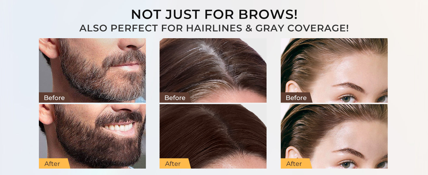 - Containing plant fibers, it is safe and gentle, and even with multiple layers, it will not harm the skin. Our unique formula can wrap around each eyebrow hair 360°, effectively filling in sparse hairs and covering white brows.