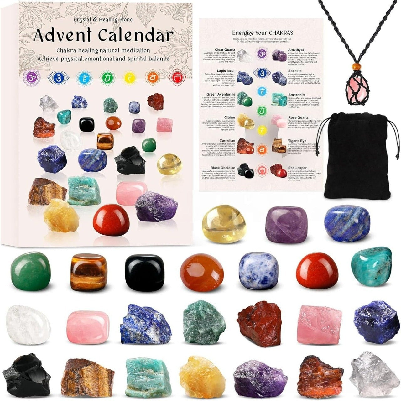 24 COLORFUL IMITATION CRYSTALS: This gift set features twenty-four carefully crafted imitation gemstones with vibrant colors and unique textures, perfect for kids and beginners to explore crystal beauty safely at home.