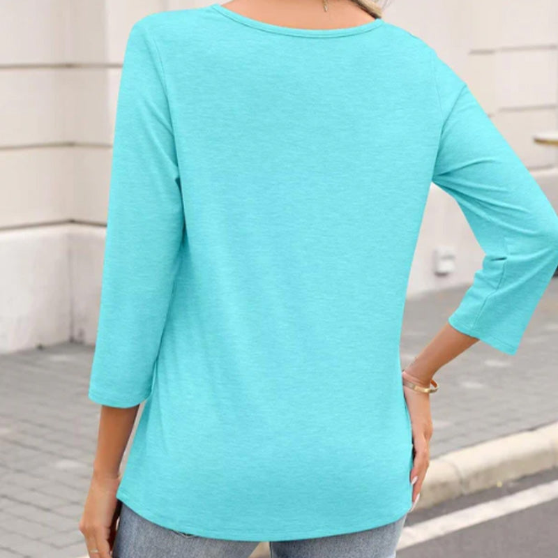 🌸Autumn Specials💐Women's 3/4 Sleeve V Neck Solid Color Top